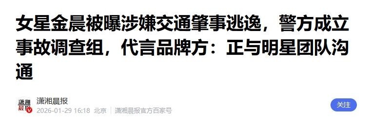 1日,演艺圈突发重磅消息:实力派演员金晨被多家权威媒体联合披露,涉嫌月在浙江绍兴某乡村路段发生交通事故后擅自离场,并指使助理代为承担全部责任。事件曝光后,舆论迅速沸腾,公众震惊之余纷纷质疑其职业素养与人格底线。